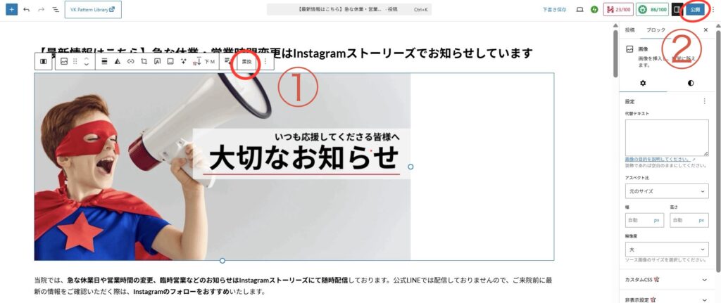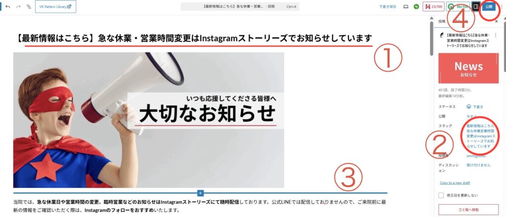 ホームページの更新作業は、WordPressの管理画面から行います。