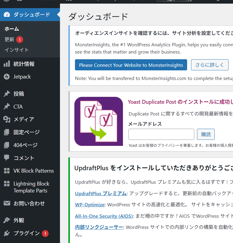 ログイン後、管理画面(ダッシュボード)が表示されます。